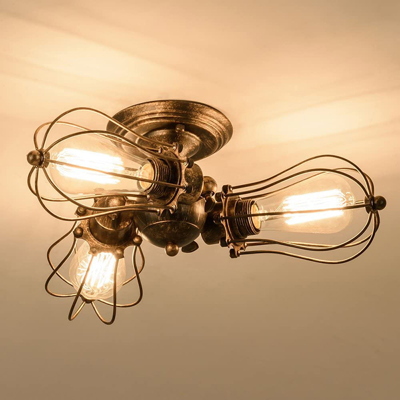 Lampu langit-langit gaya industri Retro, tiga kepala kandang berputar dapat disesuaikan untuk kamar tidur ruang tamu lampu lorong lampu dapur