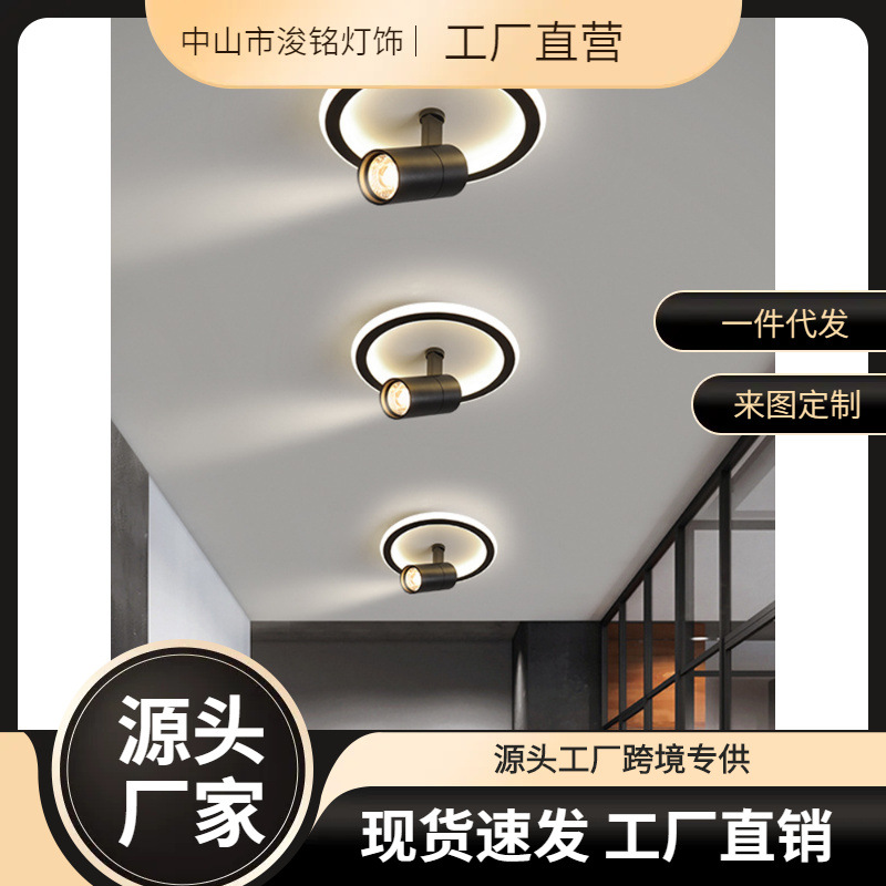 Lampu langit-langit lorong simpel modern, lampu sorot dipasang terbuka, lampu masuk, koridor, lampu sorot ke bawah berputar