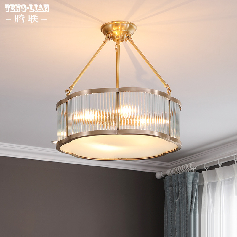 Lampu langit-langit sederhana gaya Amerika, lampu langit-langit tembaga kamar tidur ruang balkon lampu langit-langit dupleks tangga lorong lampu langit-langit
