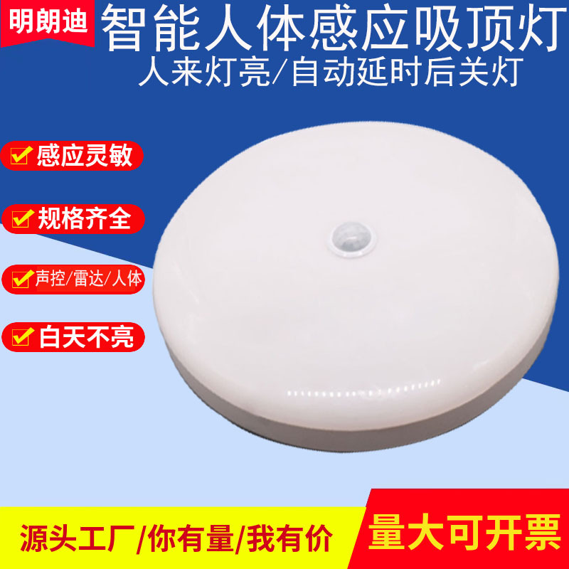 Lampu induksi infra merah tubuh manusia bulat, lampu langit-langit pengontrol suara dan cahaya, lampu induksi pintar induksi grosir