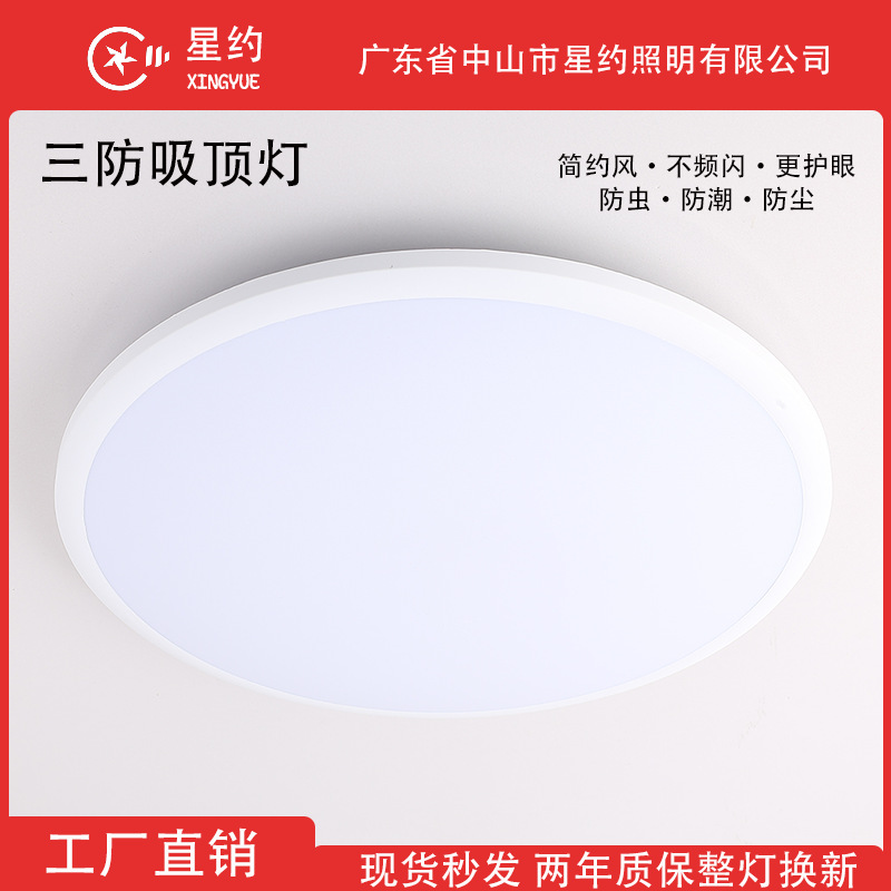 Lampu langit-langit tiga tahan Zhongshan grosir, lampu langit-langit ultra tipis putih murni koridor balkon dapur dan kamar mandi lampu langit-langit tangga