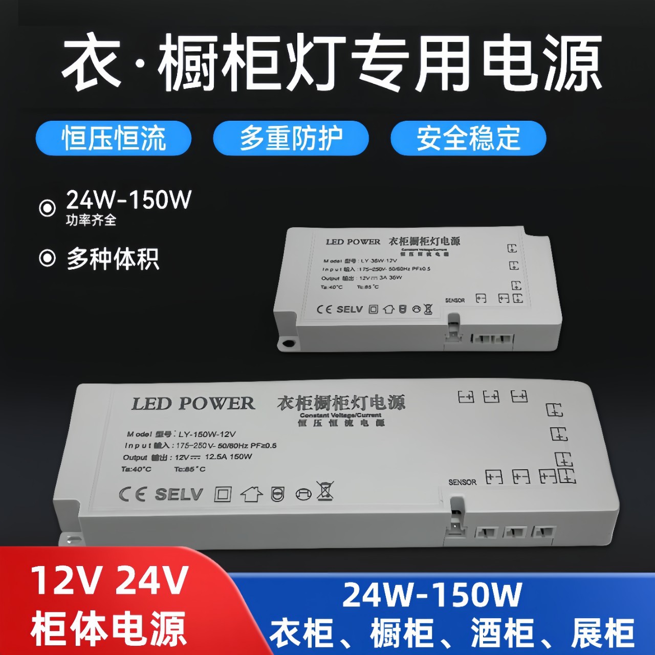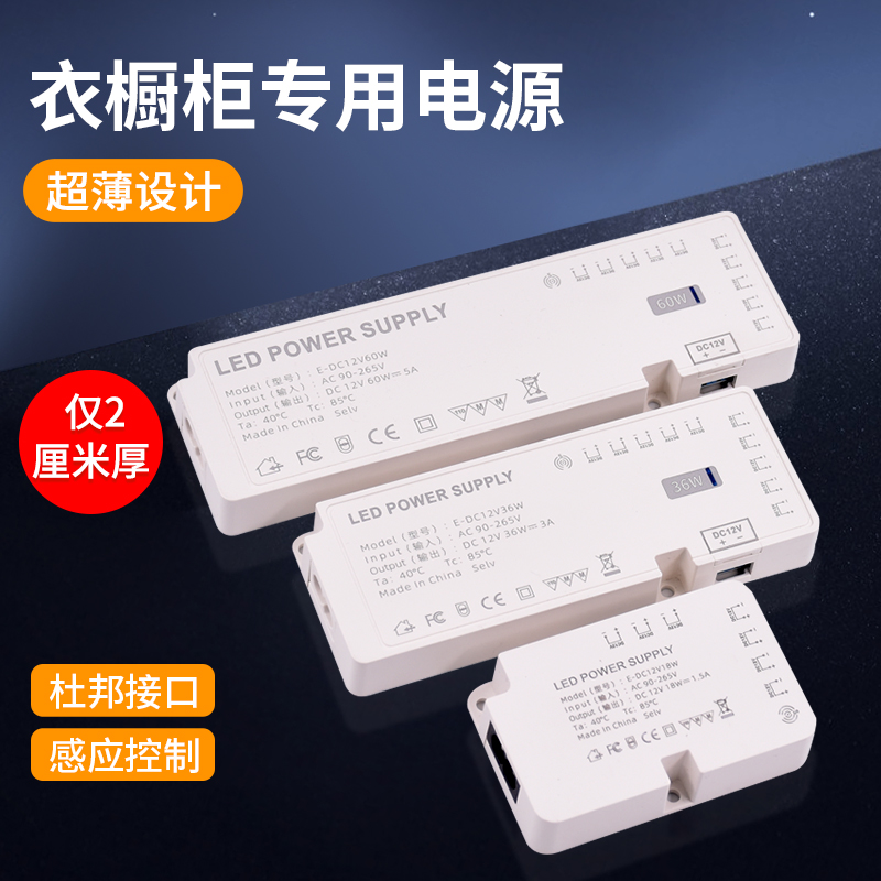 Lampu kabinet 12V catu daya khusus daya penuh tegangan konstan DuPont antarmuka lemari pakaian lemari anggur lampu induksi transformer sakelar