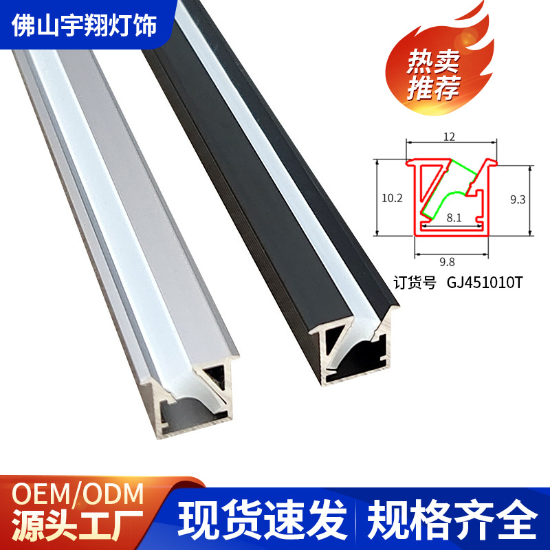 Profil aluminium lampu strip segitiga siku-siku linier tanpa alur untuk lemari, lampu strip kabinet, lampu strip aluminium yang dipasang di permukaan.