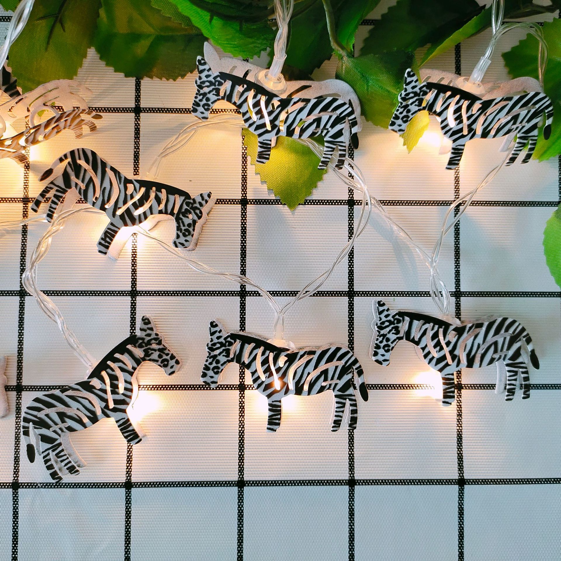 Lampu led Natal, lampu zebra hewan besi tali kotak baterai liburan pesta ins dekorasi kamar anak-anak lampu berwarna