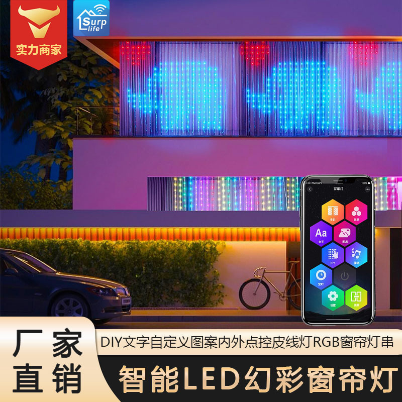 Tirai warna magis LED pintar DIY pola kustom teks dalam dan luar ruangan Kontrol Titik kulit garis cahaya RGB tali lampu