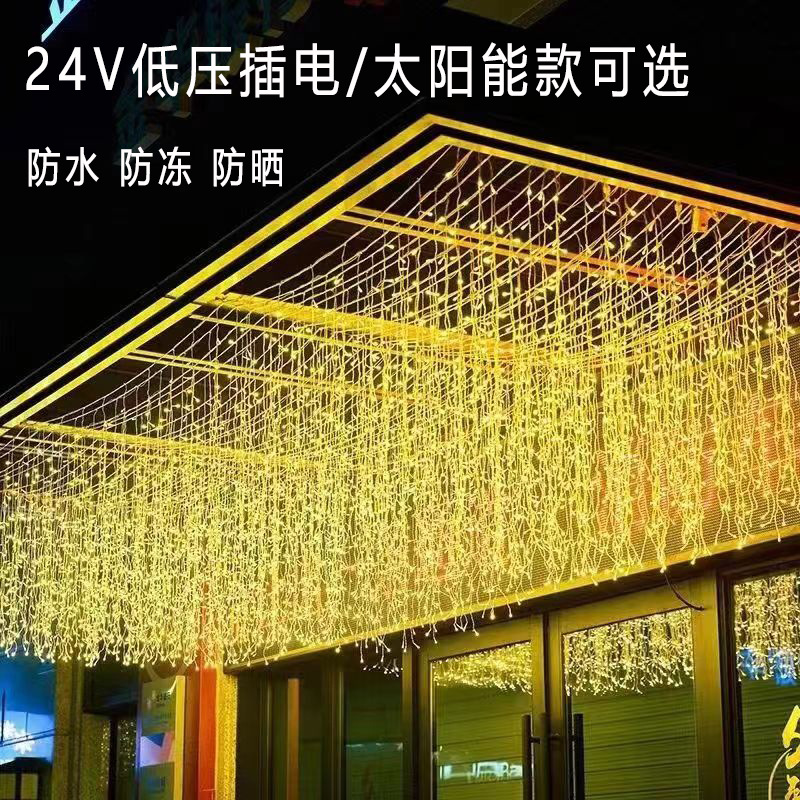 Lampu tirai LED, tirai cahaya air terjun berbintang LED, tali cahaya berwarna, lampu dekorasi teknik luar ruangan