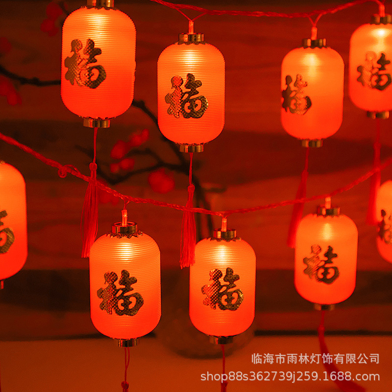 Lampu dekorasi Tahun Baru LED lampu berwarna fu karakter rumbai merah lentera festival Musim Semi Festival dekorasi tali lampu berkedip lampu suasana