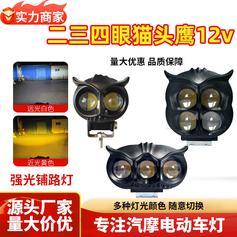 Sepeda Motor Owl Lampu Sorot Empat Manik Lampu Depan LED Lampu Tembus Cahaya Kuat Beraspal Lampu Jalan Plastik Terpadu Dimodifikasi 12V