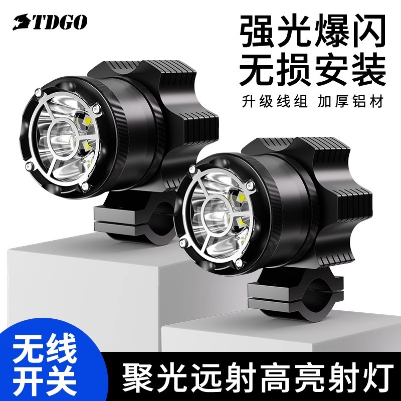 跨境批发摩托电动车外置led大功率铺路黄白远近爆闪双光透镜射灯