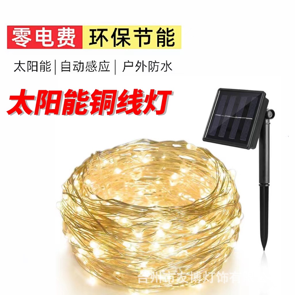 Lampu kawat tembaga led, cahaya senar tembaga tenaga surya luar ruangan tahan air halaman Natal dekorasi liburan steker tanah warna grosir