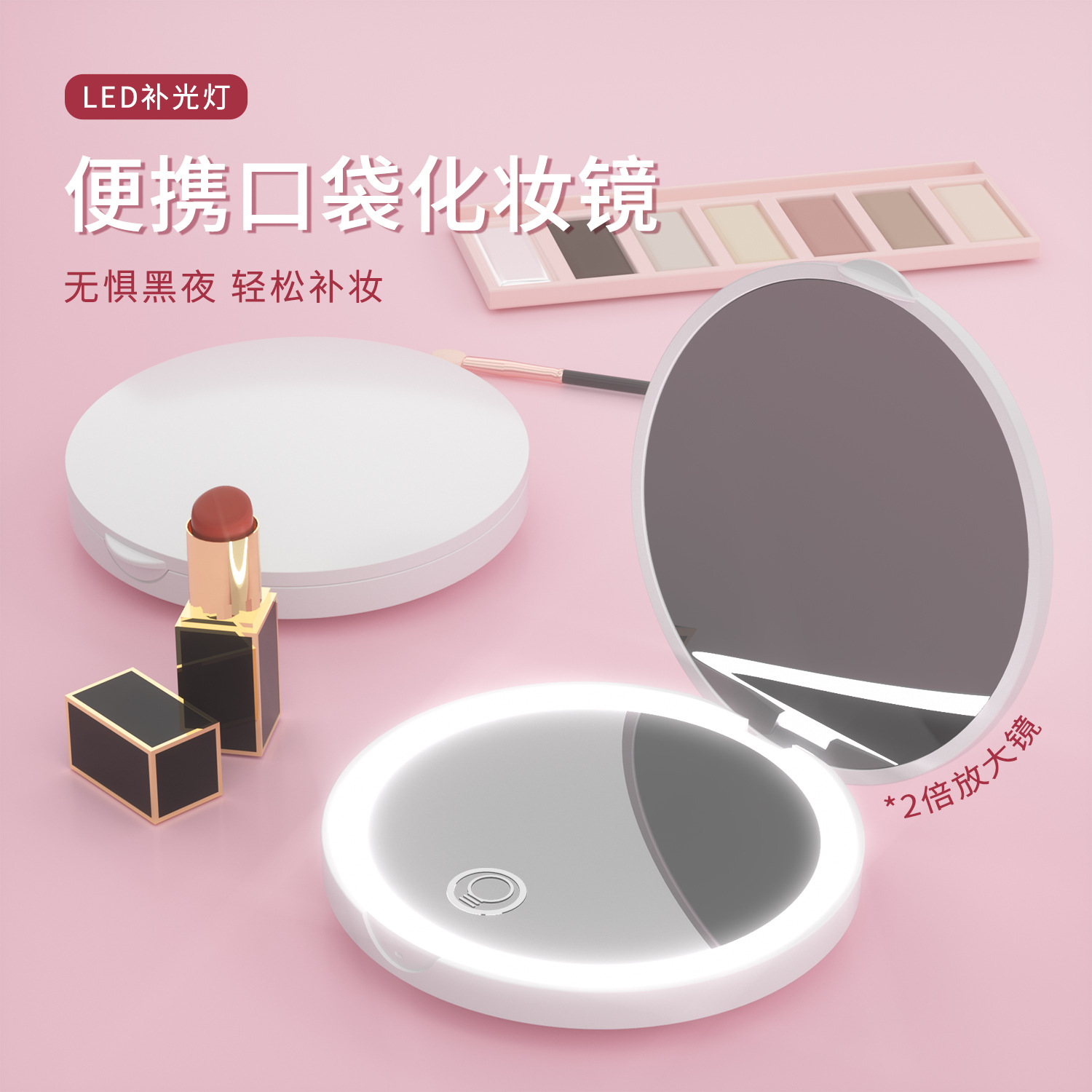 Cermin rias LED genggam lipat, cermin rias portabel isi daya lintas batas hadiah cermin kecil dengan lampu grosir