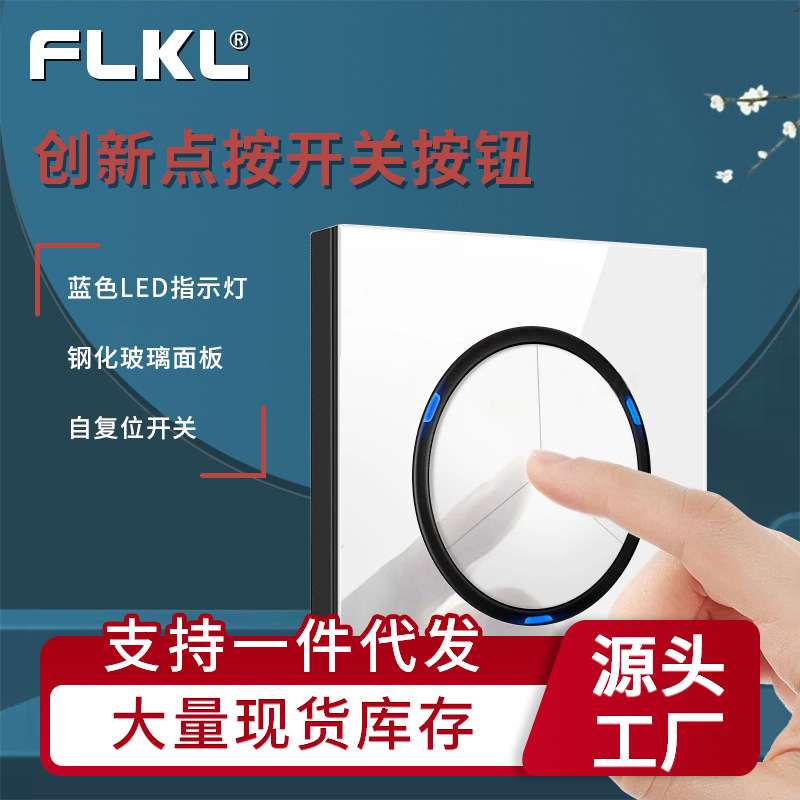 Setelan soket dinding tersembunyi tipe 86 lampu LED panel sakelar reset putih L88 kaca tempered perdagangan luar negeri