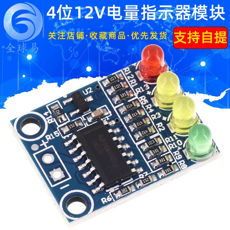 Modul indikator daya 4-bit baterai 12V onboard indikator daya 4-bit lampu LED