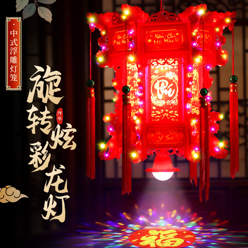 越南新款LED七彩旋转六角仿古龙灯新年灯笼走马灯大门口阳台宫灯
