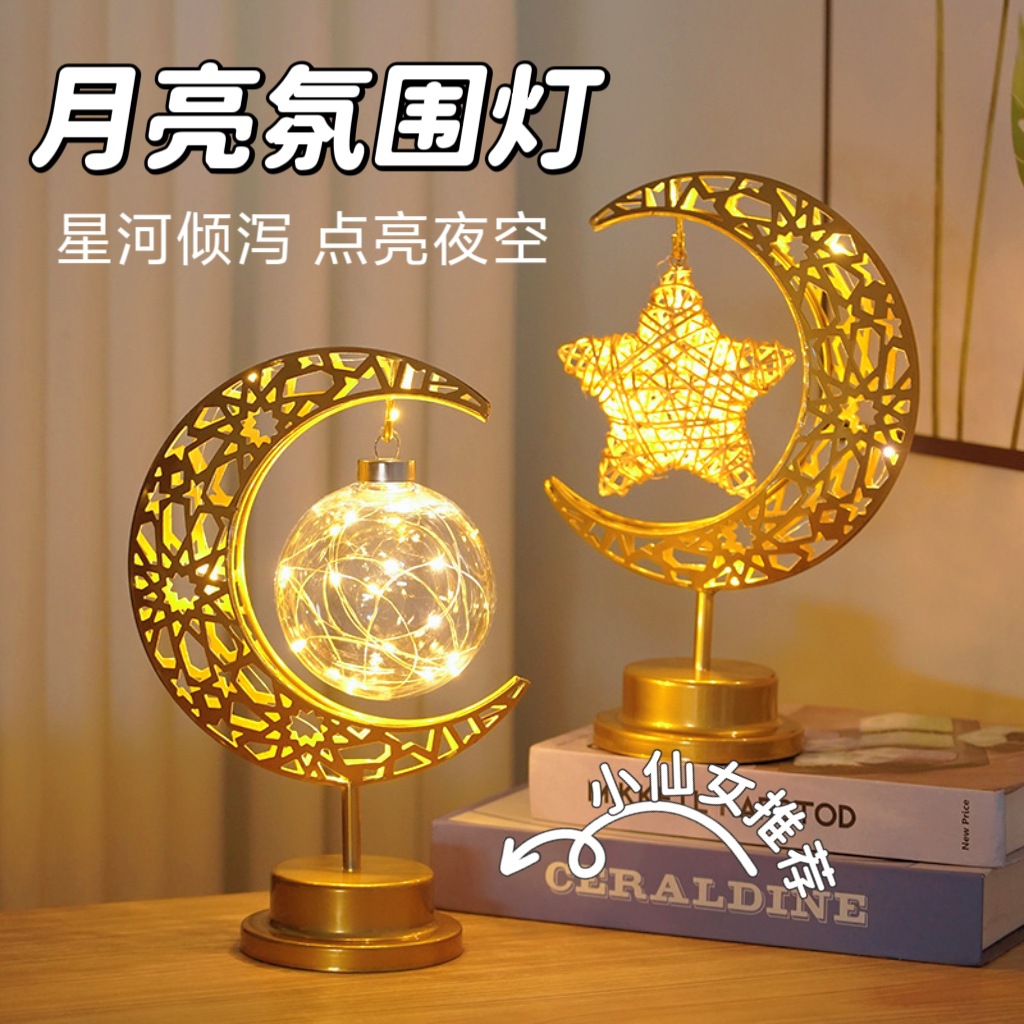 Lampu Berwarna Besi Lintas Batas LED Lampu Malam Bola Bulat Bintang Bulan Lampu Meja Kamar Tidur Dekorasi Festival Timur Tengah Lampu Bentuk