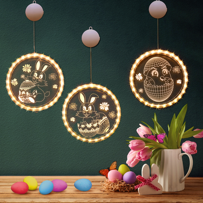 2024 baru lampu hias Paskah lampu gantung dekorasi jendela bentuk 3D lampu malam tata letak ruang LED