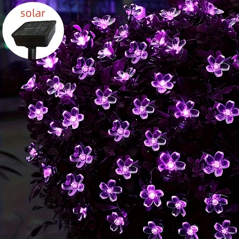 Cross-Border LED ungu tenaga surya ceri blossom tali lampu halaman luar ruangan bentuk bunga warna-warni lampu festival pernikahan pakaian