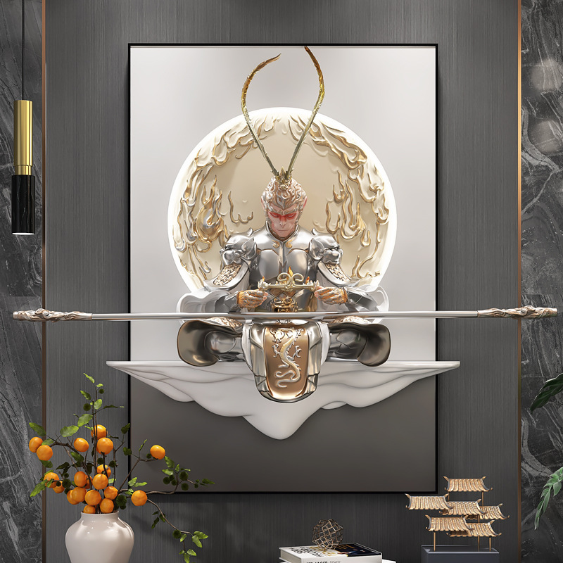 Lukisan lampu LED lukisan dekoratif pintu masuk Buddha Tuhan tempur ruang tamu Qi Tian Da Sheng matahari Wukong tiga dimensi lukisan gantung