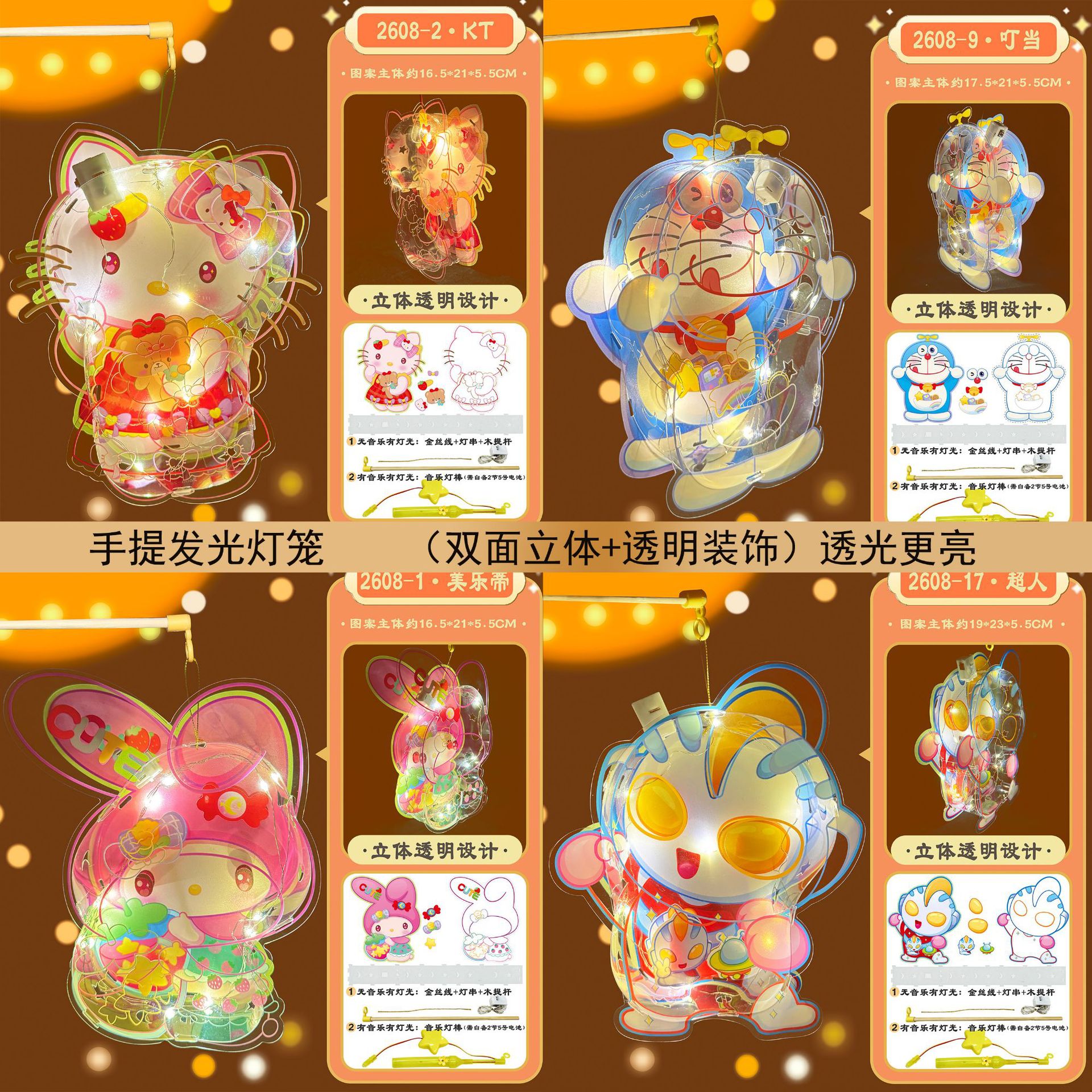 中秋发光灯笼2025新款中秋节儿童手提灯笼透明创意灯笼卡通材料包