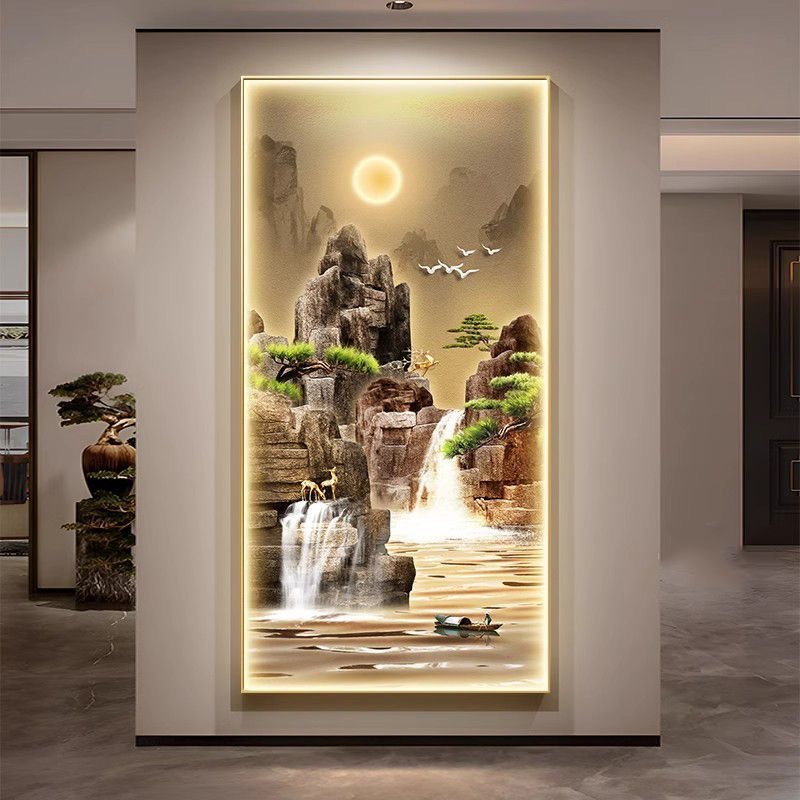 新中式壁画LED灯过道挂画走廊入户门对门装饰画玄关大气山水风景