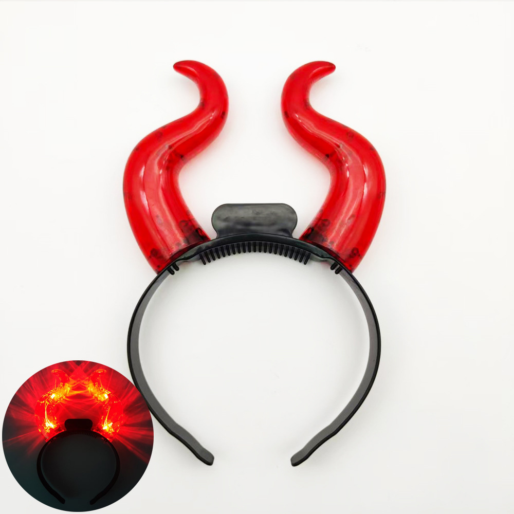 网红发光头饰牛角发箍 万圣节聚会装扮发光道具 化妆舞会发光发夹