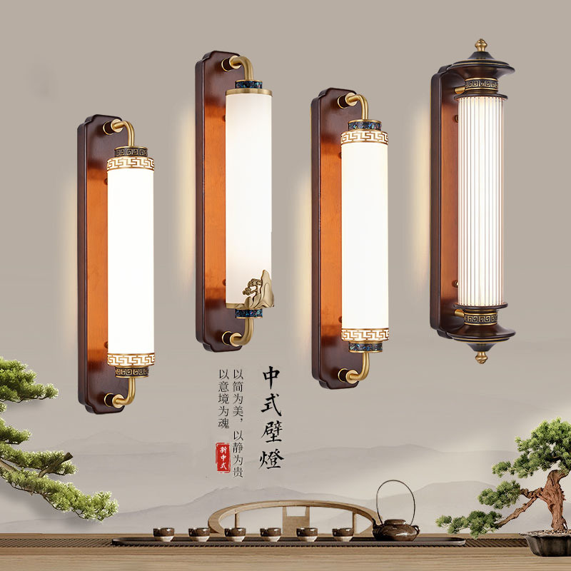 新中式实木壁灯禅意中国风客厅电视背景墙卧室床头灯过道走廊灯具