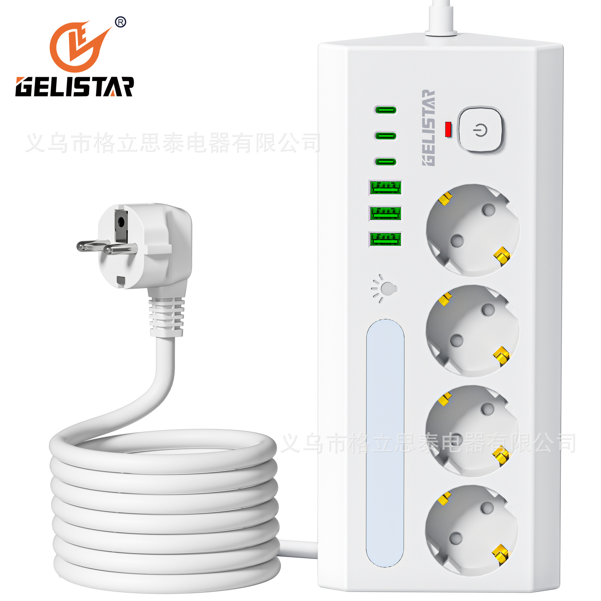欧洲欧式欧标独立开关带USB带LED灯3位家用排插