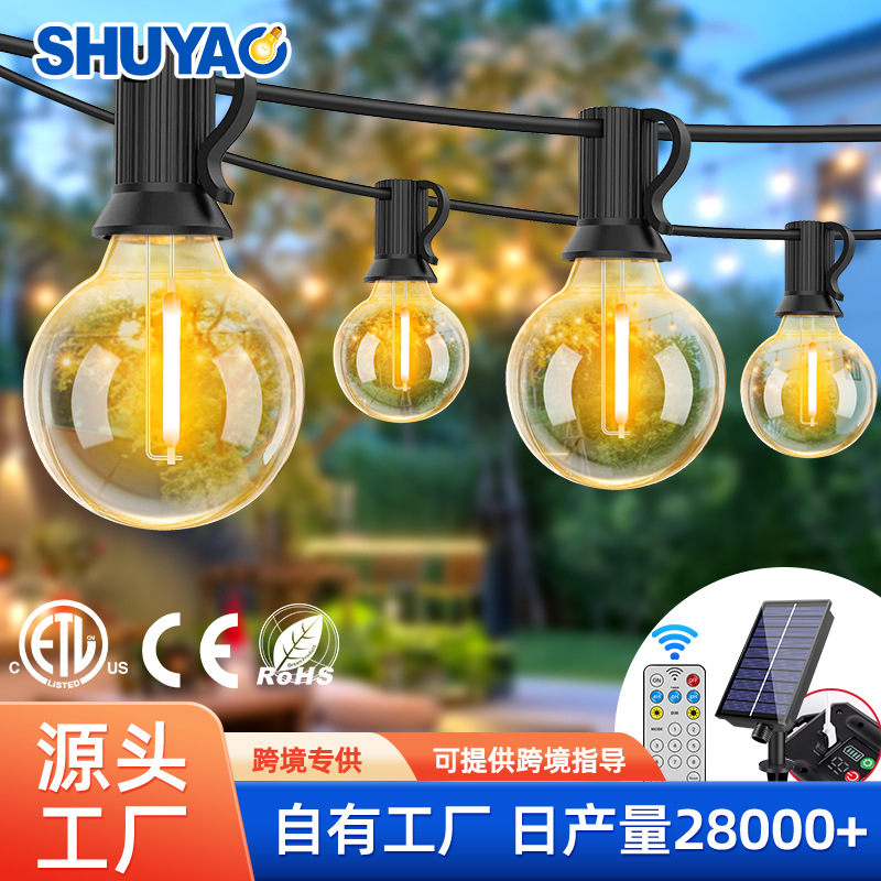 G40 String Lampu Tenaga Surya Outdoor Tahan Air Lampu Hias Perkemahan LED Remote Kontrol Diedupan Berkemah Lampu Bersuasana Plastik Anti Jatuh