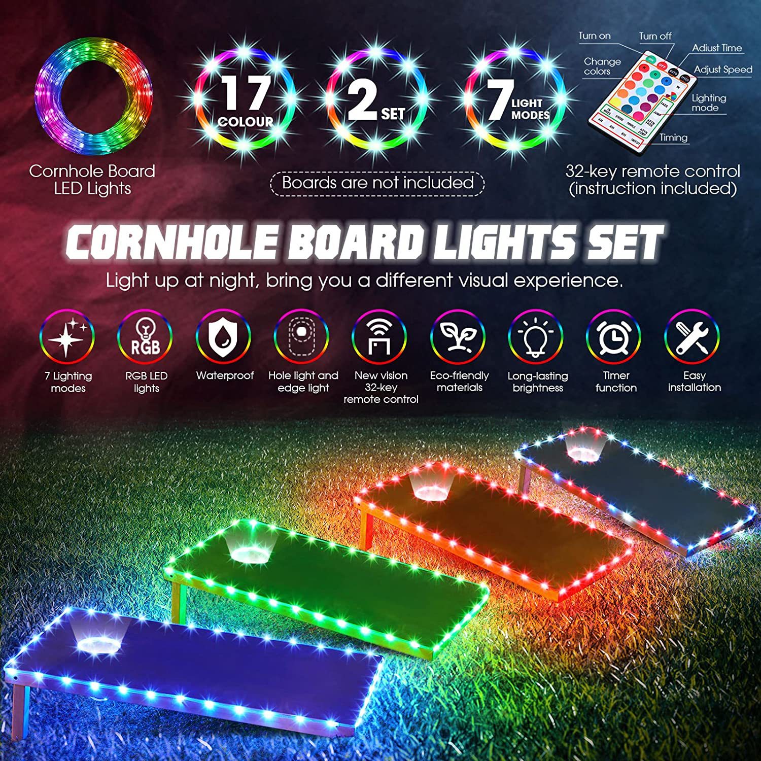 Lampu LED papan sandbag penjualan laris Amazon Cross-border tali pengendali jarak jauh 16 warna garis lampu lubang jagung lampu bangku sandbag cahaya
