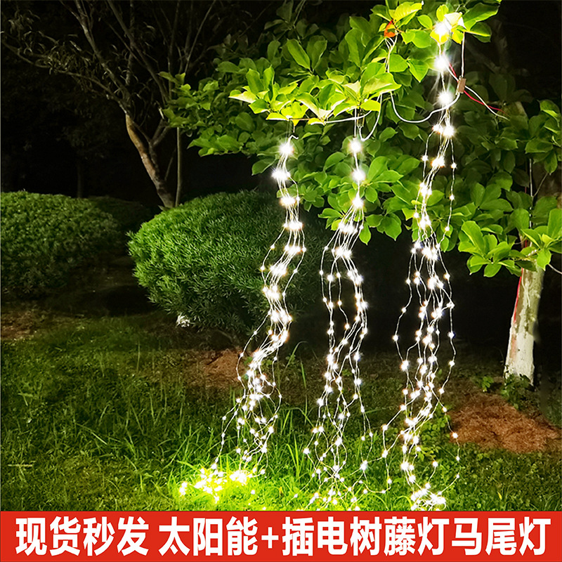 Lampu led tenaga surya tali lampu ekor kuda pohon, lampu rotan luar ruangan tahan air dekorasi tali lampu drooping lampu dekorasi Natal