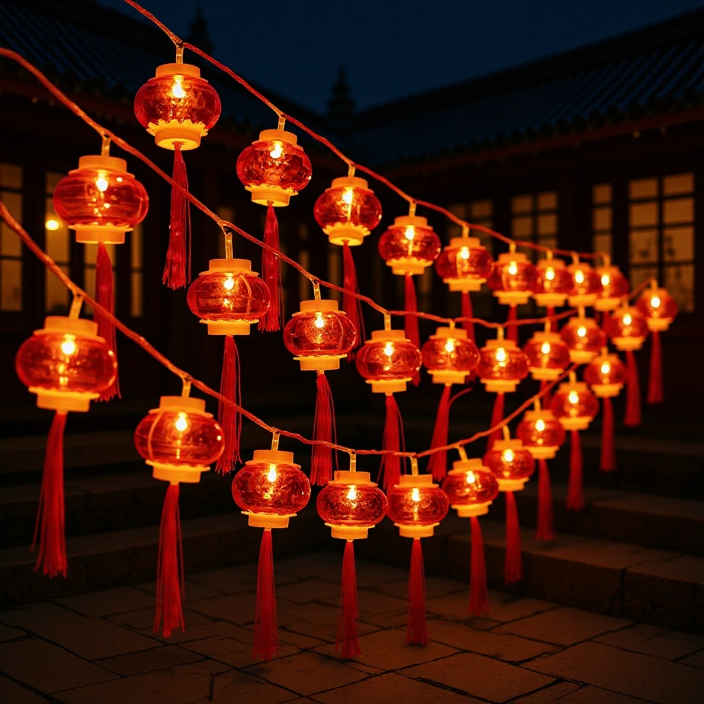 Lampu taman luar ruangan bertenaga surya baru untuk perayaan tahunan, lentera merah dekorasi taman, lampu string LED surya.