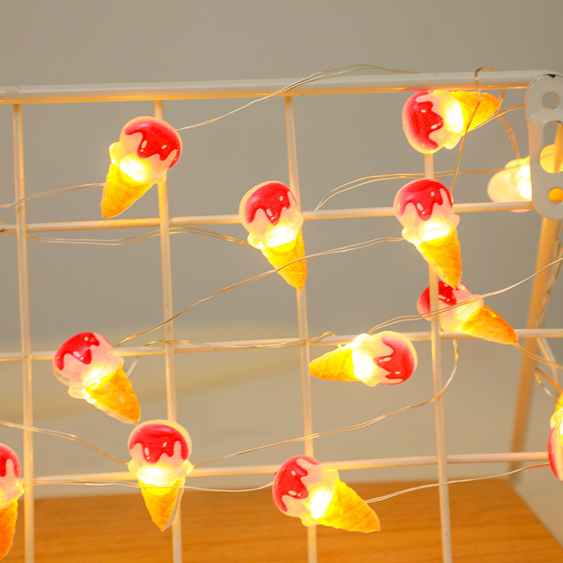 String Lampu Kabel Tembaga LED Model Baru DIY Dekorasi Buatan Tangan Bentuk Es Krim Dekorasi Kamar Interior Lampu String
