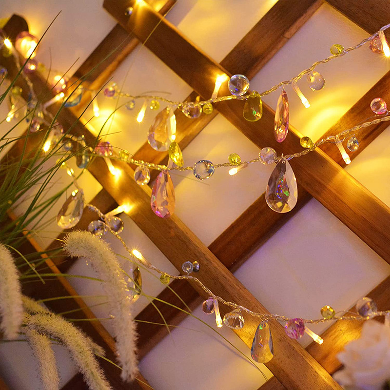 Permata warna-warni lampu LED 10 kepala kristal anak lampu berwarna dekoratif romantis buatan tangan baterai tetesan air tali lampu