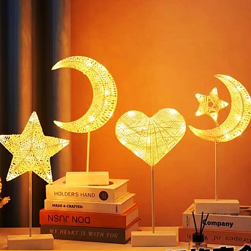 Lampu malam gaya rotan selebriti online baru dekorasi kamar tidur pohon Natal Hati anak perempuan pabrik bintang pelukan bulan grosir
