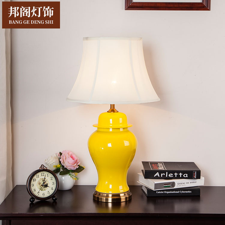 Lampu meja keramik sederhana gaya Amerika, lampu samping tempat tidur, lampu model dekorasi lembut lampu meja hotel Tiongkok baru