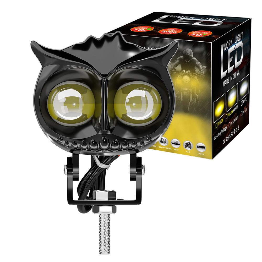 跨境 摩托led车灯白黄猫头鹰外置摩托车射灯前照灯前大灯改装