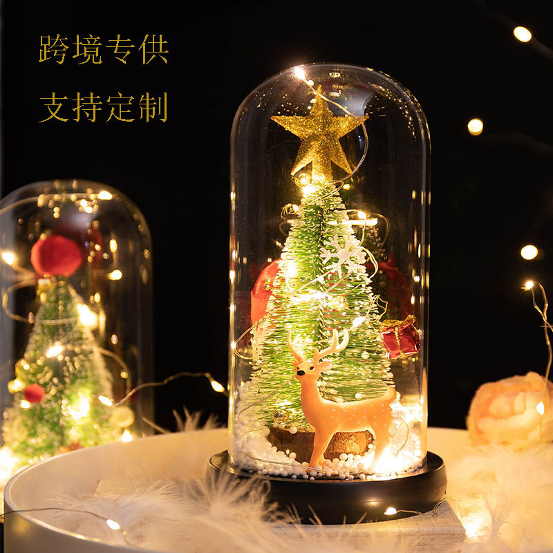 Ornamen rusa dengan lampu LED, penutup kaca, dekorasi jendela kayu cedar, hadiah Natal kreatif Amazon untuk pasar lintas batas