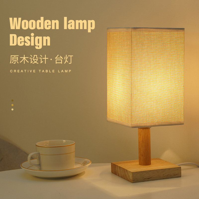 Kain kayu solid skandinavia lampu meja usb dekorasi kamar tidur lampu samping tempat tidur belajar tempat tidur dan sarapan remote control lampu malam led kreatif