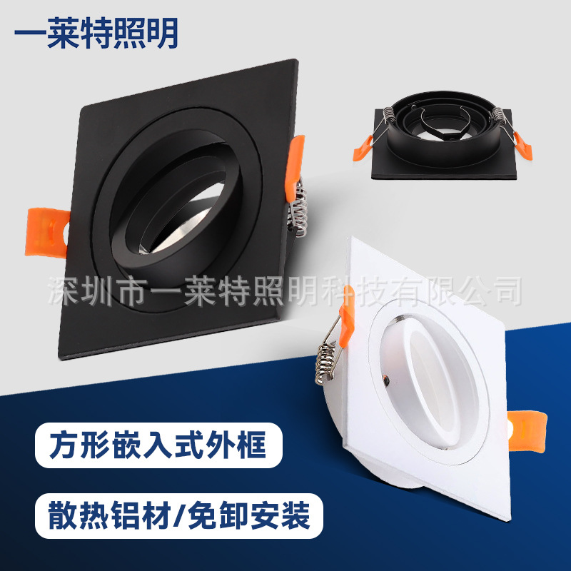 led射灯外框白色方形卡灯杯支架MR16 gu10灯框铝合金外壳配件