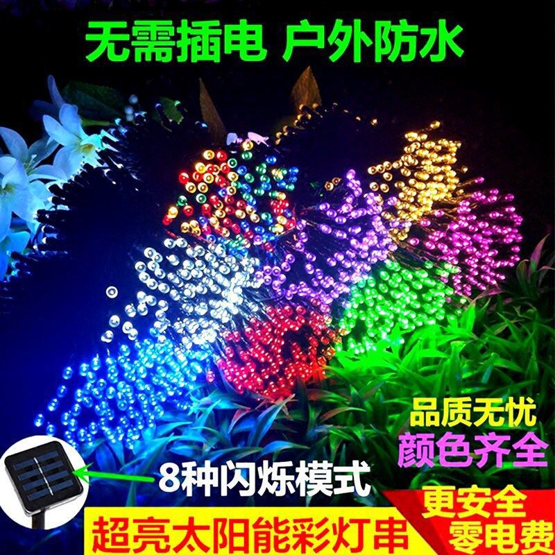Lampu LED tenaga surya tali luar ruangan lampu berwarna dekorasi halaman rumah lampu gantung 8 fungsi pencahayaan cabang tali lampu