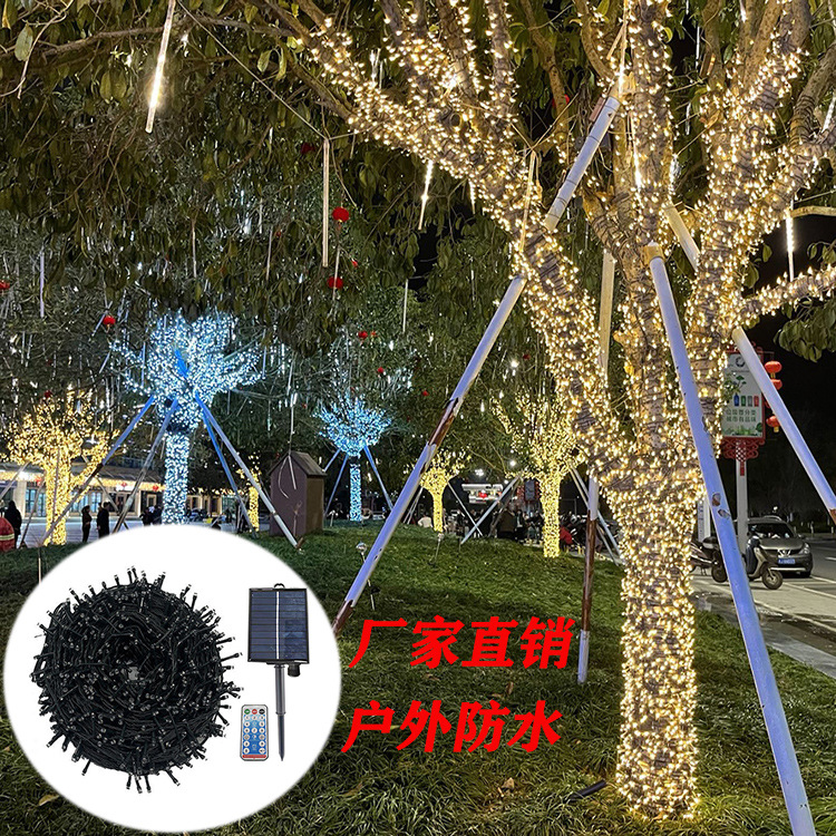 Lampu hujan Meteor led luar ruangan lampu hujan Meteor surya lampu warna-warni dekorasi halaman Natal liburan lampu gantung pohon berwarna