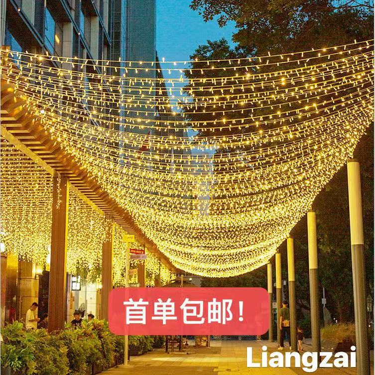 Lampu Suasana Natal Bintang LED Lintas Batas Luar Ruangan Bintang Langit Langit Penuh Dekorasi Kamar Tirai Lampu Ulang Tahun Lampu Warna-warni
