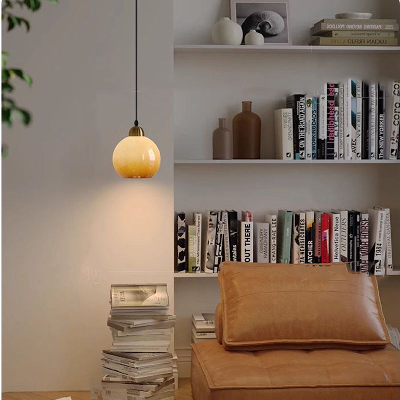 Krim Lampu Gantung Kecil Pertengahan Gaya Jepang Retro Lampu Gantung Kepala Tempat Tidur Kamar Tidur Utama Lampu Suasana Kaca Koridor Lorong Pintu Masuk