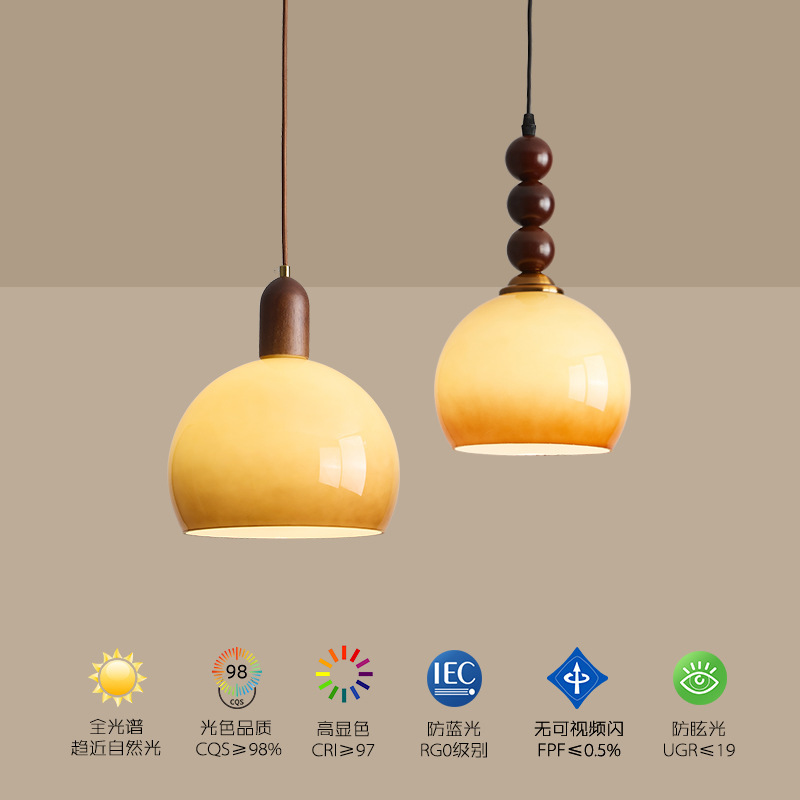 Lampu Gantung Kaca Karamel Warna Karamel di Kamar Tidur Restoran Gaya Perancis Lampu Kayu Solid untuk Pintu Masuk Sederhana Kreatif