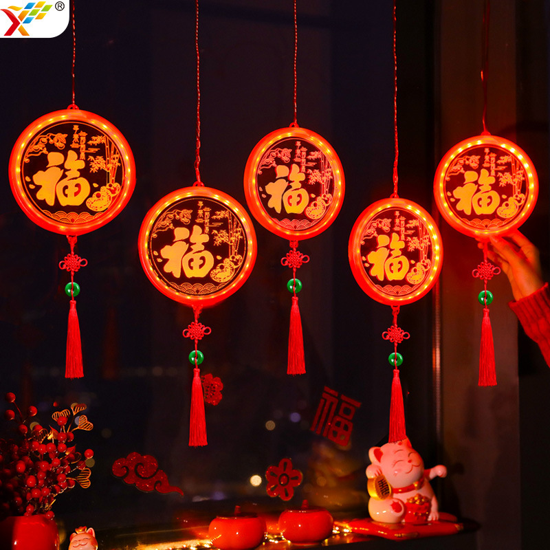 Lampu hias Tahun Naga, lampu hias Tahun Baru, liontin tali lampu led, grosir, stiker pintu karakter fu, lampu sedot 3D, lampu Tahun Baru 2024