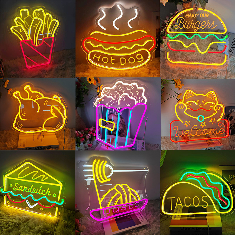 Amazon cross-border LED tanda neon lampu hamburger pizza kentang goreng anjing panas Ramen kata bercahaya lampu hias USB