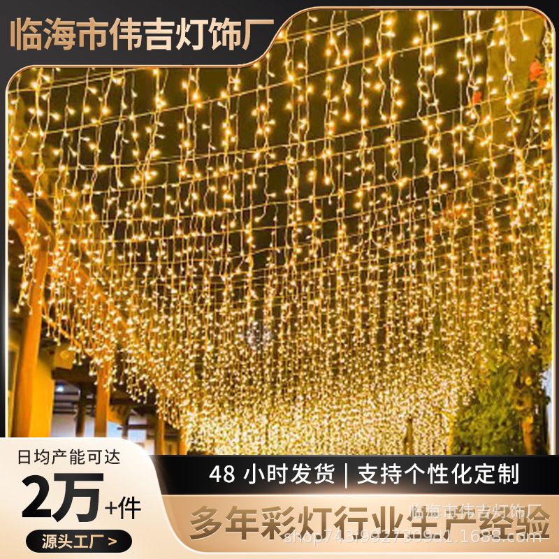 Tirai lampu es LED, cahaya air terjun berbintang tahan air tali lampu Natal lampu berwarna lampu belanja teknik luar ruangan