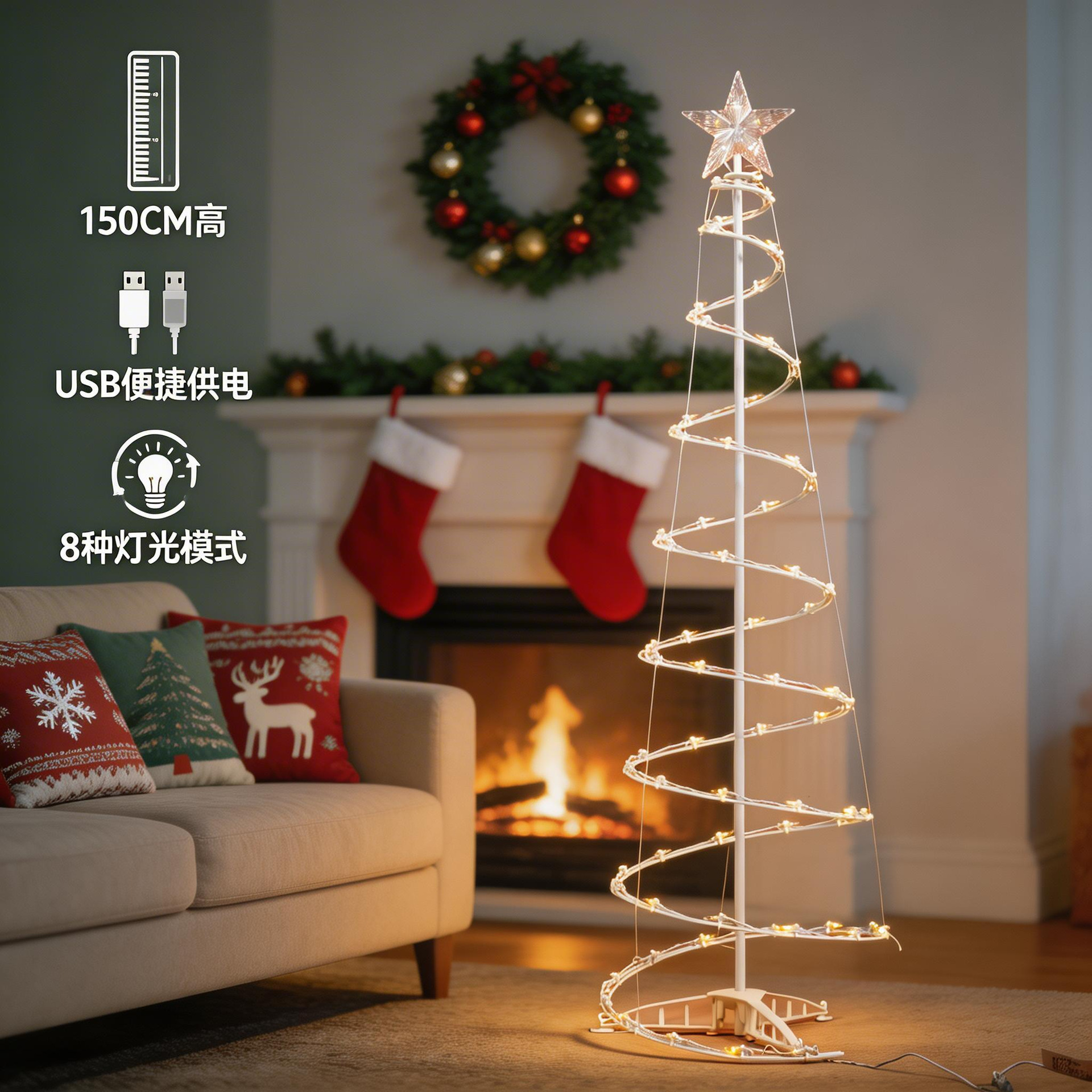 Lampu spiral pohon Natal LED 1,5 meter, sederhana dan minimalis, bercahaya untuk suasana Natal, USB