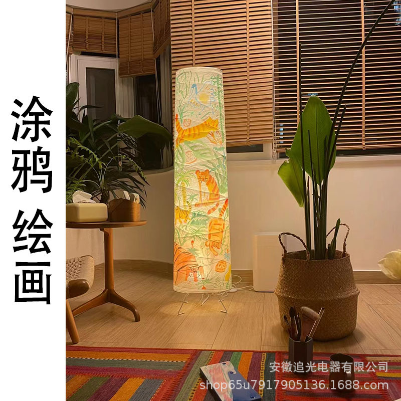 Nordic sederhana kreatif mode kertas lantai lampu naungan gaya Jepang ruang tamu kamar tidur dekorasi samping tempat tidur lampu berdiri wickloby