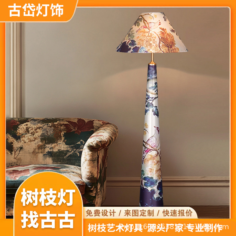 Lampu Lantai Berdiri Ruang Tamu Model Pertengahan Perancis Lampu Dekorasi Kamar Tidur di sebelah Sofa Hotel Seni Kain Nanyang Gaya Retro
